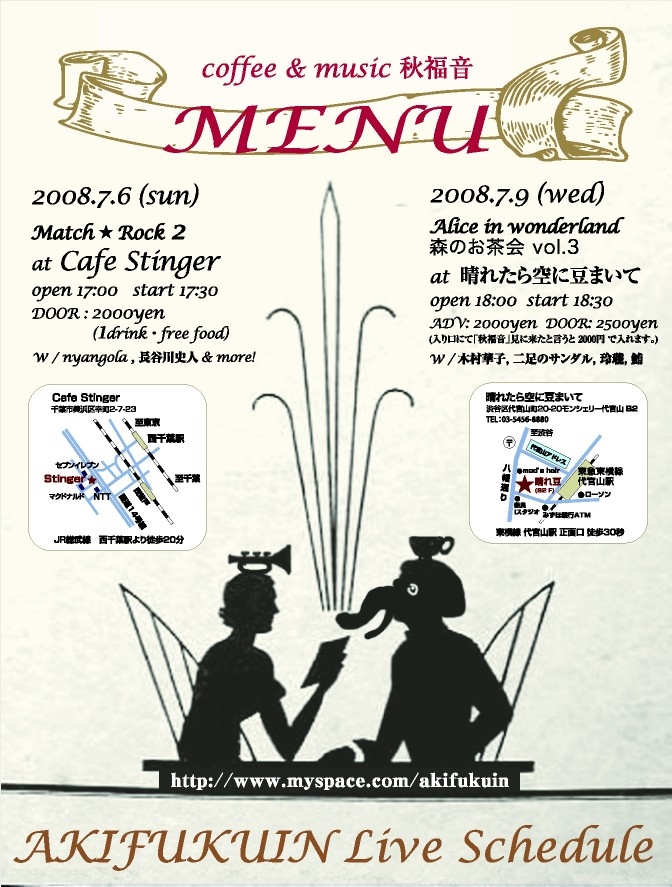 次は7月6日と9日に立て続けに秋福音のライブです。