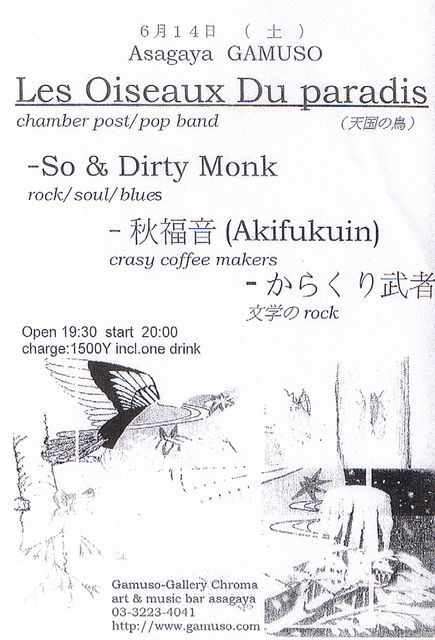 Charge: 1500 円 w/ 1 drink